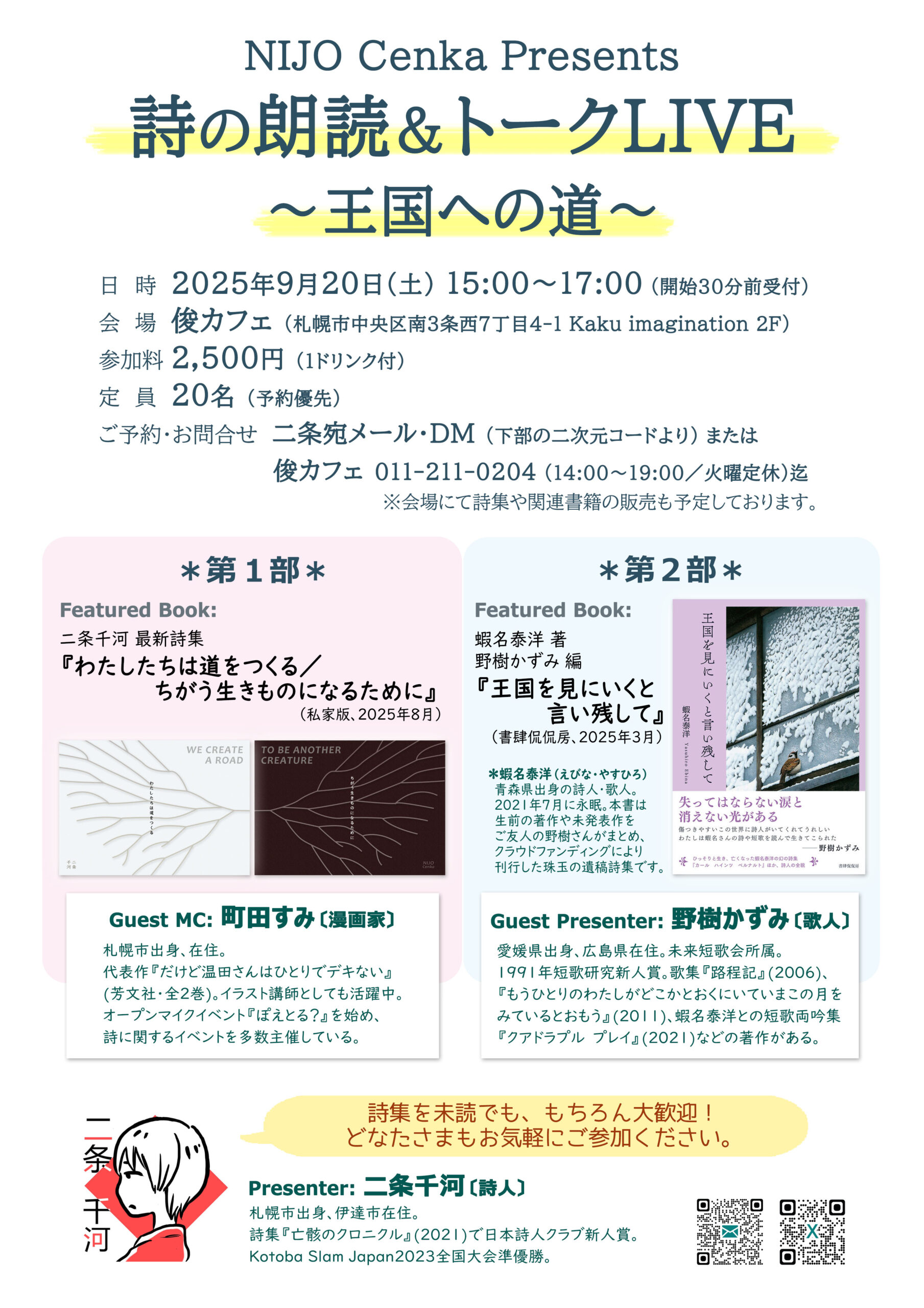 北海道出身在住の詩人・物語作家、二条千河のオフィシャルサイト